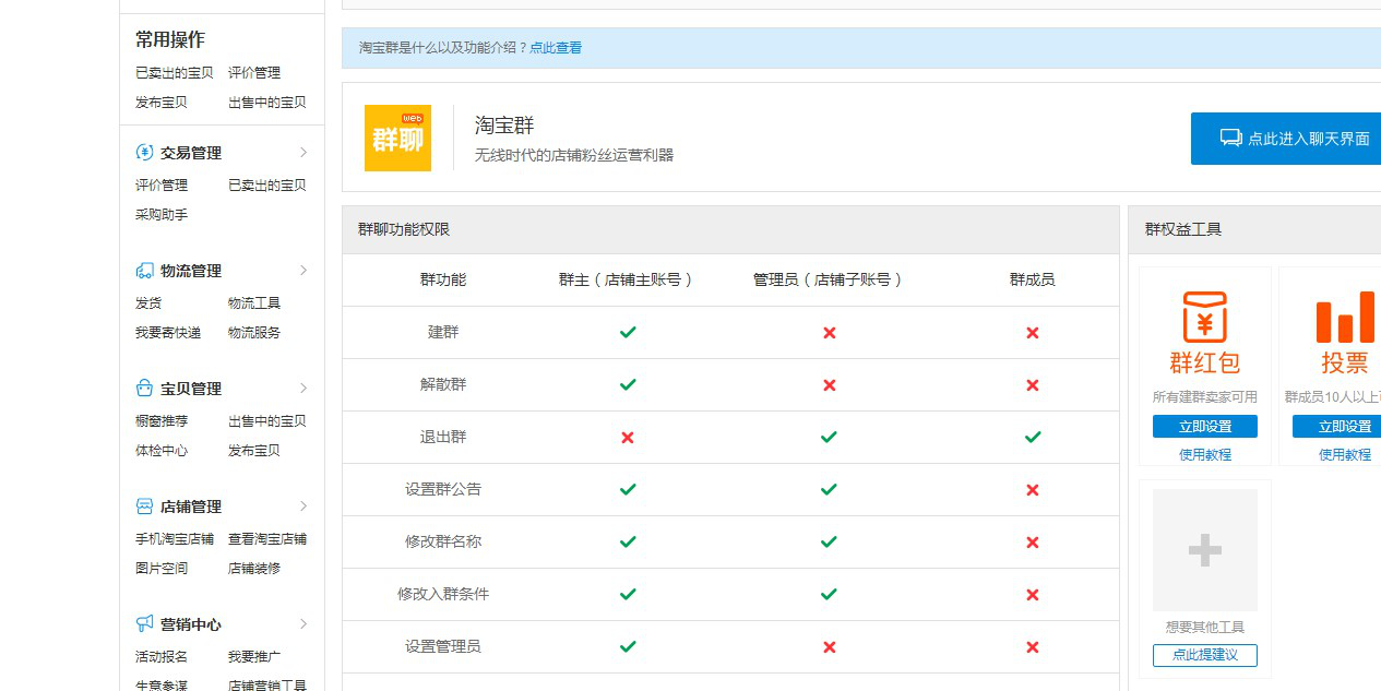 从卖家中心里可以找到淘宝群,